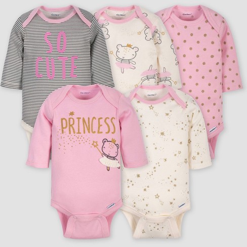Gerber Baby Girls 5pk Long Sleeve Princess Bodysuits Pink Ivory